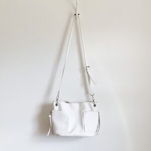 Steve Madden BKOLTT HOBO BAG White Vegan Leather Crossbody Bag. Adjustable, removable strap. Attached pouch inside with pockets and zipper. Outside side pockets. Great condition except for some staining on the inside lining. Feels and looks like real leather! Missing shorter strap shown in stock photos.
