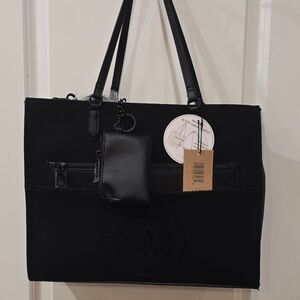 Steve Madden BLivia SM Circle Emblem Logo Candy-Coated Tote Bag- Black