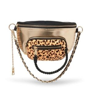 Elevate your outfit with this trendy Steve Madden Belt-Bag in leopard animal print. This medium-sized bag comes with three straps, a detachable strap, a pouch, a coin purse, and a bag charm. The gold and silver hardware adds a touch of elegance to the faux leather exterior material.
