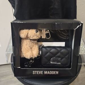 Steve Madden BWren Quilted Flap Card Case Wallet & Bag Charm Set