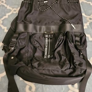 Steve Madden black backpack, white writing, used, excellent condition.