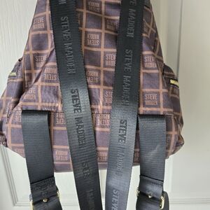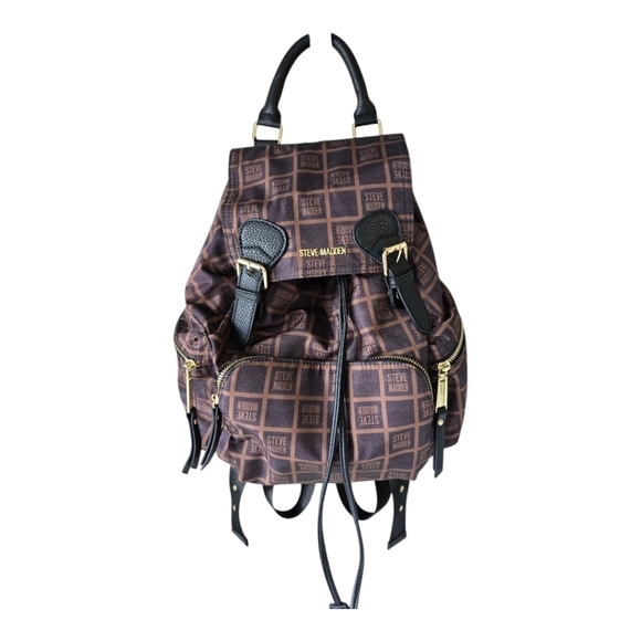 Steve Madden Backpack Black Brown Monogram Carryall Women Large Excellent