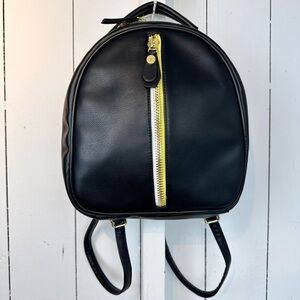 Steve Madden Backpack Multi Zipper Black Yellow Adjustable Strap Purse Bag Tote