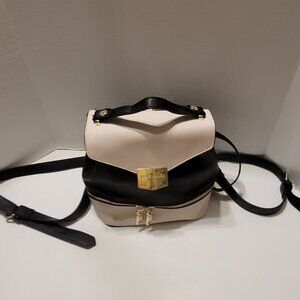 Steve Madden Backpack Purse Black and Cream inside pockets Bag