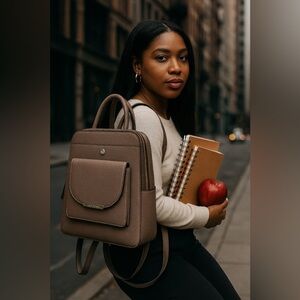 • Spacious zippered main compartment fits books, tech, and travel must-haves