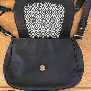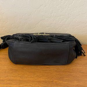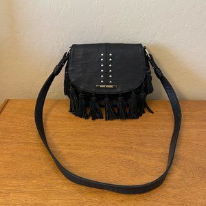 Steve Madden Bag Black Fringe Gold Logo Stud Flap Crossbody Shoulder Bag Purse