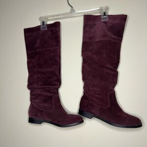 Steve Madden Balen Leather Suede Knee High Slouch Boot Burgundy 6
