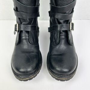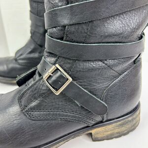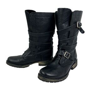 Steve Madden Banddit Moto Biker Leather Boots Black Mid Calf Buckles & Straps 7