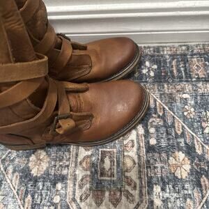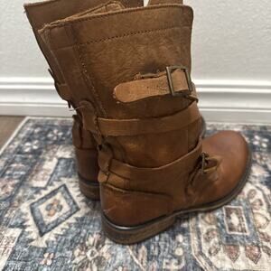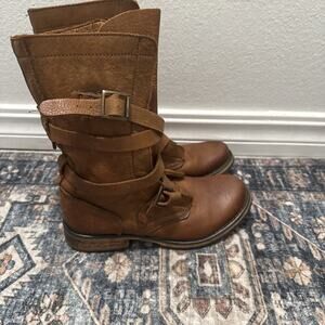 Steve Madden Banddit Moto Boots Brown Soft Leather Slip On Women’s Sz 6.5