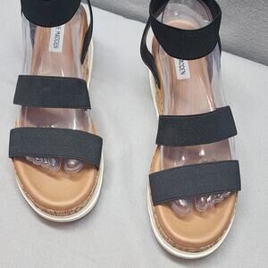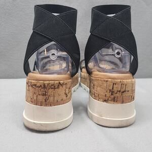 Steve Madden Bandi Platform Wedge Heel Sandals Cork Ankle Strap Black Women's 9