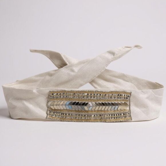 Bohemian style bandanna beaded headband from Steve Madden; NWOT and in like new condition! Cream in color with gold, grey, and silver embellishments.