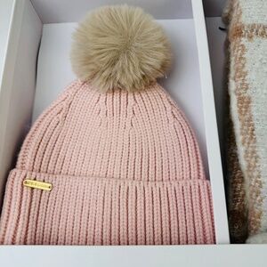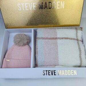 Steve Madden Beanie Hat Pom and Scarf Gift Set in Pink Blush Women's Size OSFM