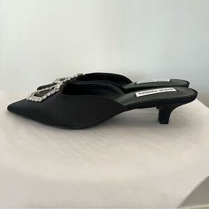 Steve Madden Beignet Black Satin Rhinestone Buckle Embellishment Size 8 NWOB