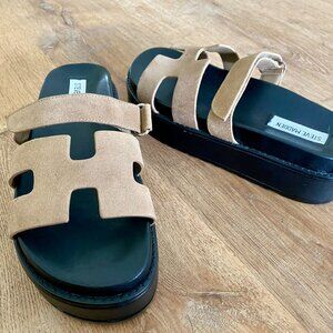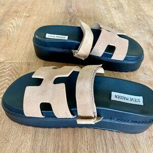 Steve Madden Bigmayven Flatform Slide Sandals in Tan Nubuck - 8M