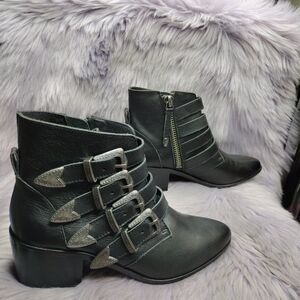 Steve Madden Billie Black Leather Boots Buckles Womens Size 7 Boho Western