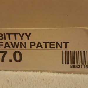 Steve Madden Bittyy Women's Size 7 Beige/Nude Shiny Patent Open-Toed Stiletto Sandals (4" High) in Used, Good Condition (with box)