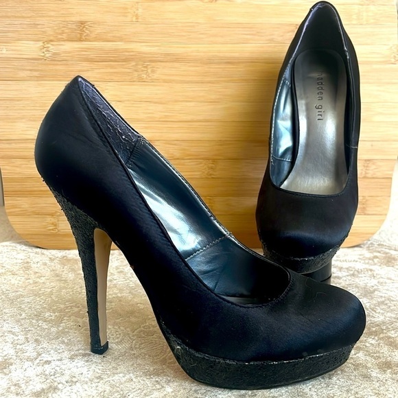 Steve Madden Black 5" High Heels Platform Pumps Satin Black Glitter Sexy Formal. Women's size 9.5. No box.