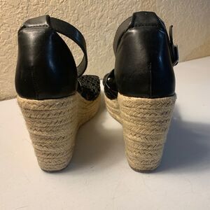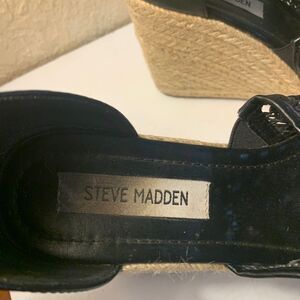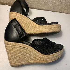 Steve Madden Black Basket Weave Wedge Platform Leather and Rope Sandall Size 7M