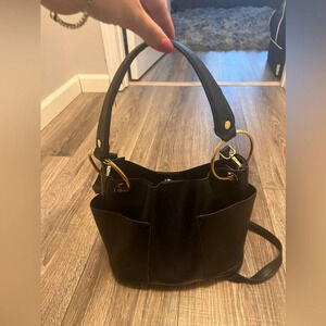 Steve Madden Black Bucket Bag Crossbody Gold Hardware
