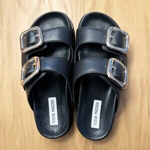 Steve Madden Black Cape Gold Buckle Sandals Size 8
