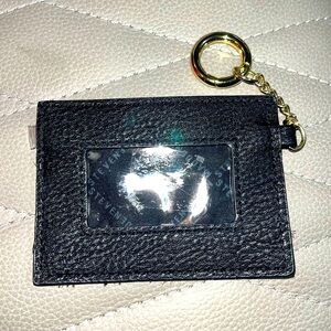 Sleek and stylish, this Steve Madden card holder is perfect for organizing your essentials. The black design is complemented by a chic gold chain, adding a touch of elegance to your accessories collection.