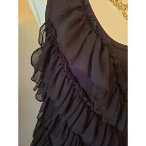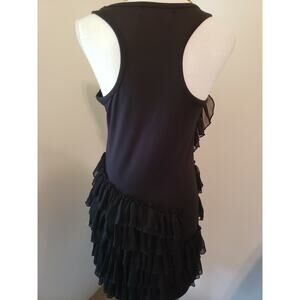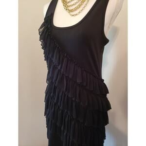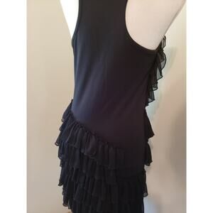 Steve Madden Black Chiffon Tier Ruffle Bodycon Stretch Racerback Tank Dress M