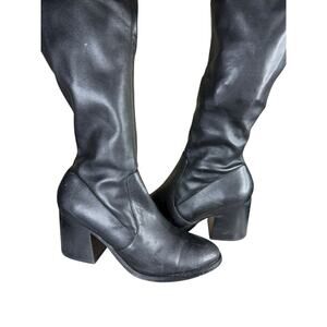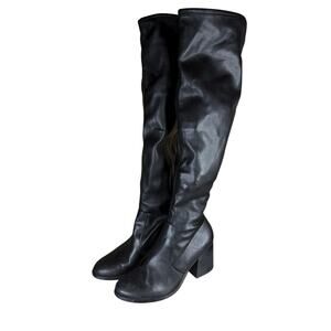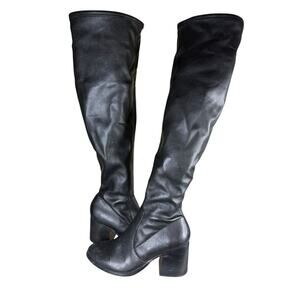 Steve Madden Black Faux Leather Over The Knee Stretch Sock Boots Size 10