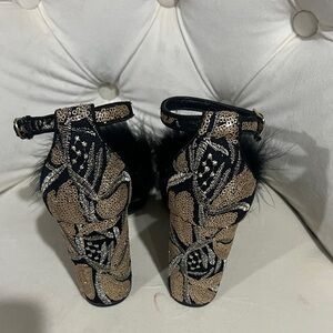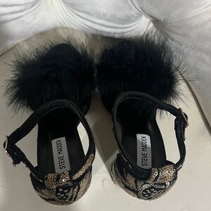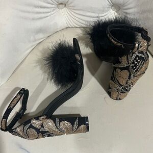 Elegant black heels with feather detail. Perfect for a stylish look.Fits size 7-7.5