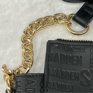 Steve Madden Black Floral Logo Printed Chain Strap Crossbody Roses Shoulder Bag