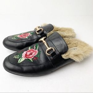 Steve Madden Black Floral Smoking Flat Mule SZ 6.5 Jill