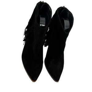 Steve Madden Black Fringe Western Boots Women's Size 10 B Leather Pointed Toe Ankle Country Cowgirl Nashville Zip Closure