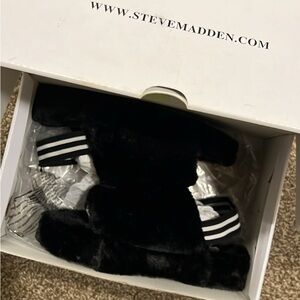 Soft black slippers with a chic design. Ideal for relaxing at home. Worn once.
