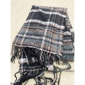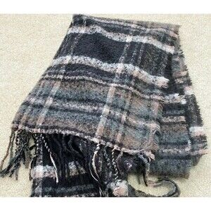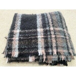 Steve Madden Black Gray Fringed Scarf Pink Plaid Striped Women Wrap Blanket L