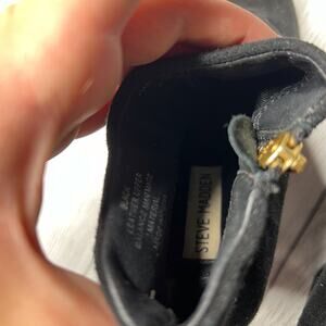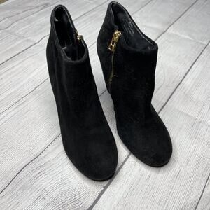 Steve Madden Black Heeled Ankle Boots Booties Leather Suede Gold Zip Sz 8.5M