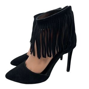 Steve Madden Black Heels Size 7 Suede Fringe Pointed Toe Stiletto Memoo