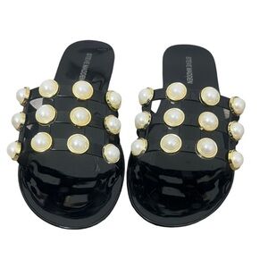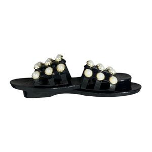 Steve Madden Black Jelly Sandals With Pearl Accents. Size 41. Sandals are in very good condition with minimal wear. Slide sandal.