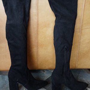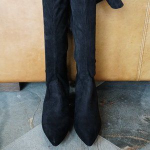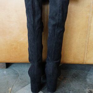 Leg-hugging over-the-knee shaft, elegantly structured foot and high sturdy heel, this boot is universally flattering.