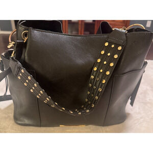 Steve Madden Black Large Shoulder Bag Studded Strap bucket Vegan leather purse