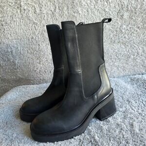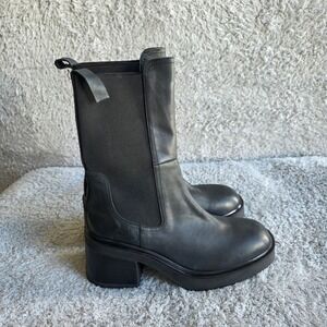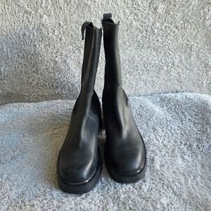 Steve Madden Black Leather Heeled High Ankle Boots Pull On Women's 10.5 EU 41