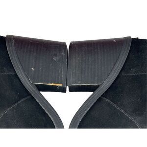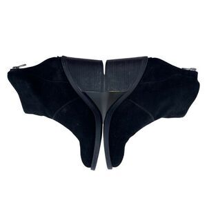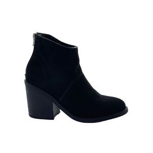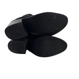 Steve Madden Black Leather Suede Ankle Boots Size 7.5 on the sides of the heel has some wear shown in pictures but not the bottom of the boots