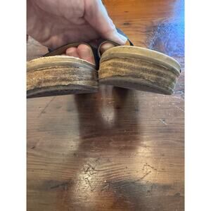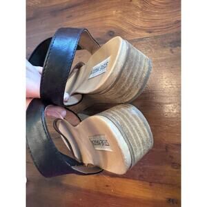 Steve Madden Black Leather Wooden Flatform Sandals, Size 9