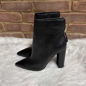 Steve Madden Black Leather Tristan Pointed Toe Block Heel Bootie Size 10 NEW