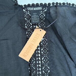 Steve Madden Black Open Front Swim Bathing Suit Cover Top NWT OS