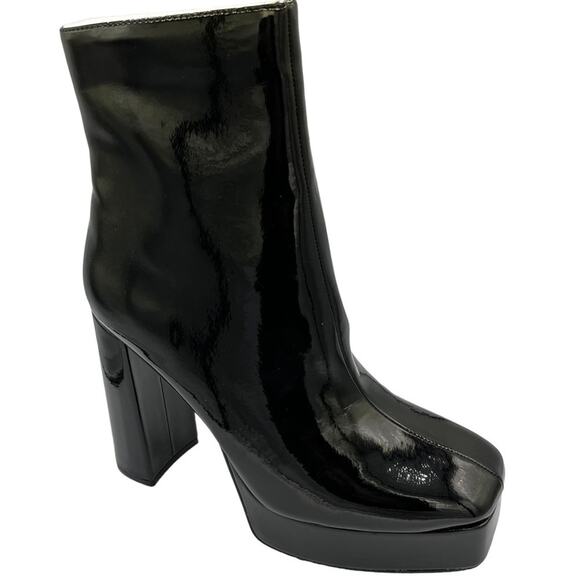 Steve Madden Black Patent Leather Platform Boots 9.5 "Luisina" Punk Goth Witchy