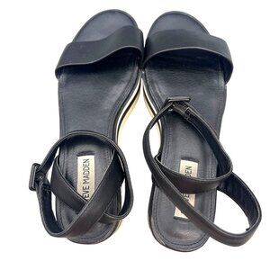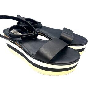 Steve Madden Black Platform Sandals Striped Sole Size 9.5 Straps Adjustable