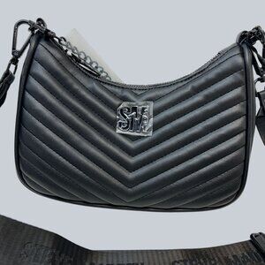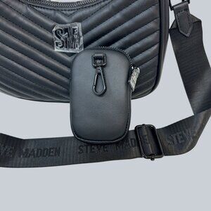 Steve Madden Black Quilted Crossbody Bag With Chain Strap & Pouch