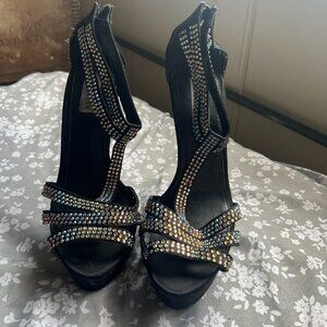 Steve Madden Black Rhinestone Heels - Size 8.5, Classy Formal Party Heels