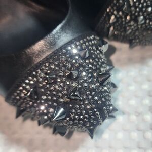 Edgy black heels with bold spiked accents. Ideal for a standout look.