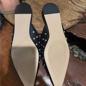 Chic black flats with silver studs. Sleek and stylish design. Perfect for any occasion.