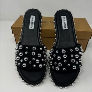 Chic black slides adorned with silver studs. Ideal for casual outings.
